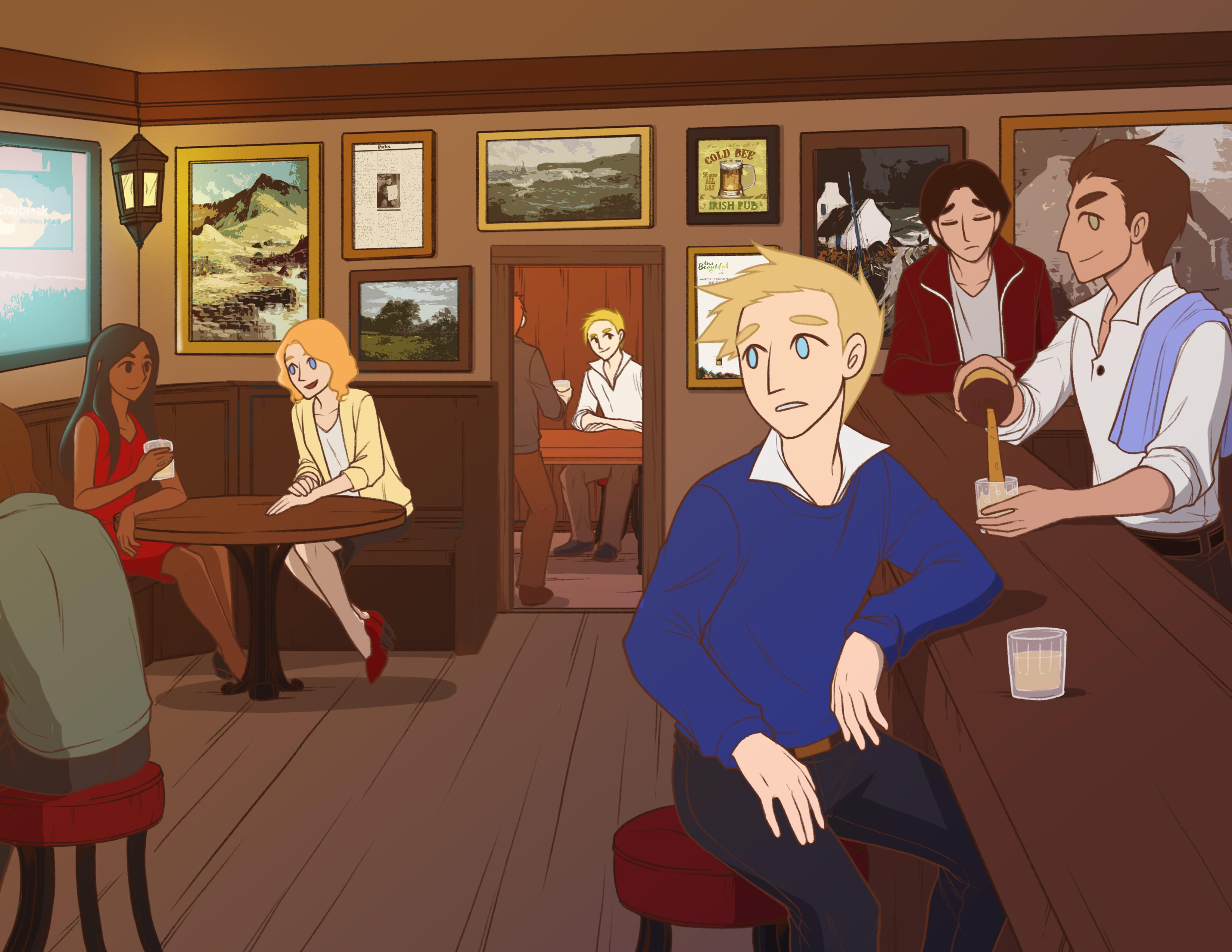 "Seacht bpionta Guinness agus ceann beag, le do thoil, a Mhicí." 🔊✎