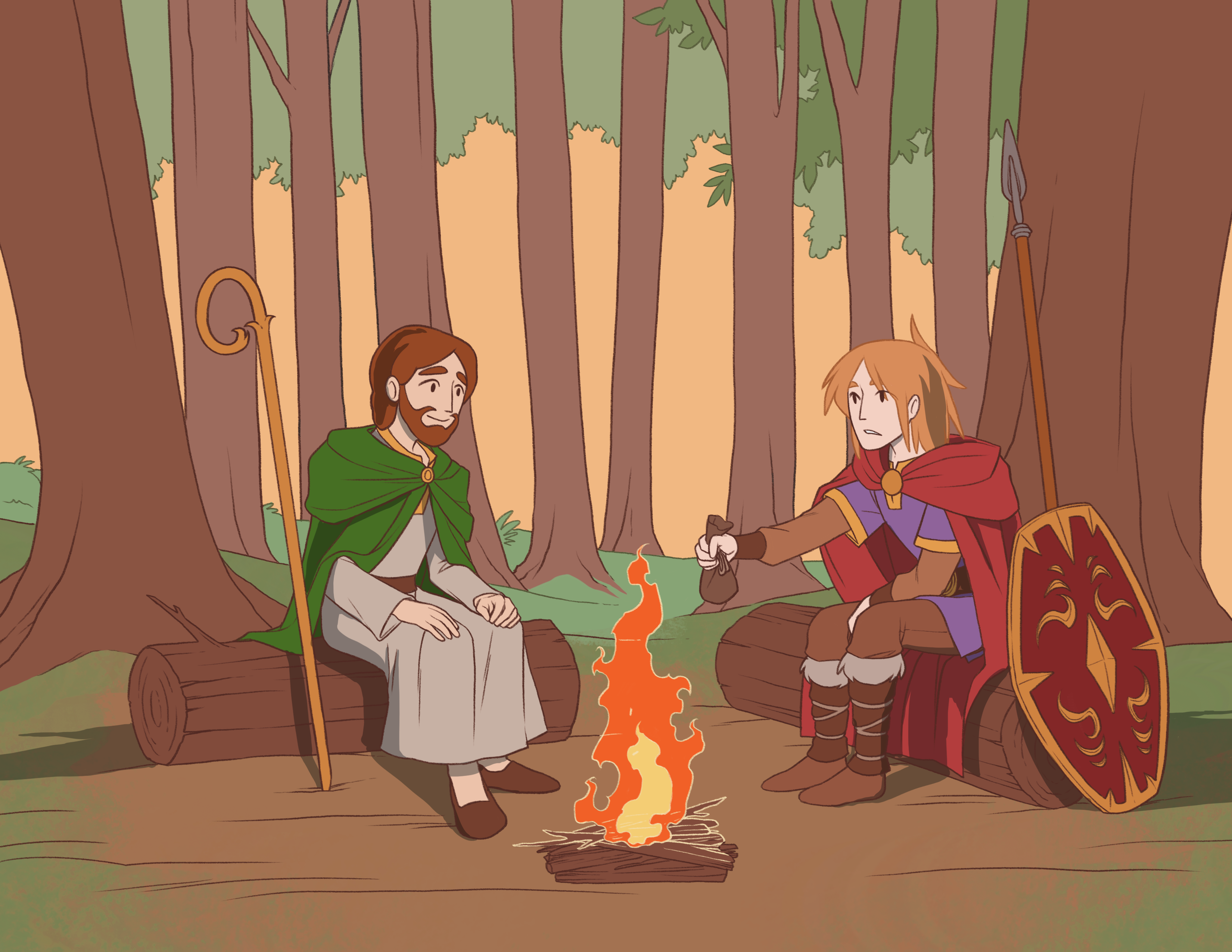 A fholt a réiteach sa choill agus gan ach aon chrann amháin a ligean idir é féin agus laochra a thóra. 🔊✎ Leanfadh a naonúr laochra é le sleátha. 🔊✎ Ní raibh glacadh ansin leis:
